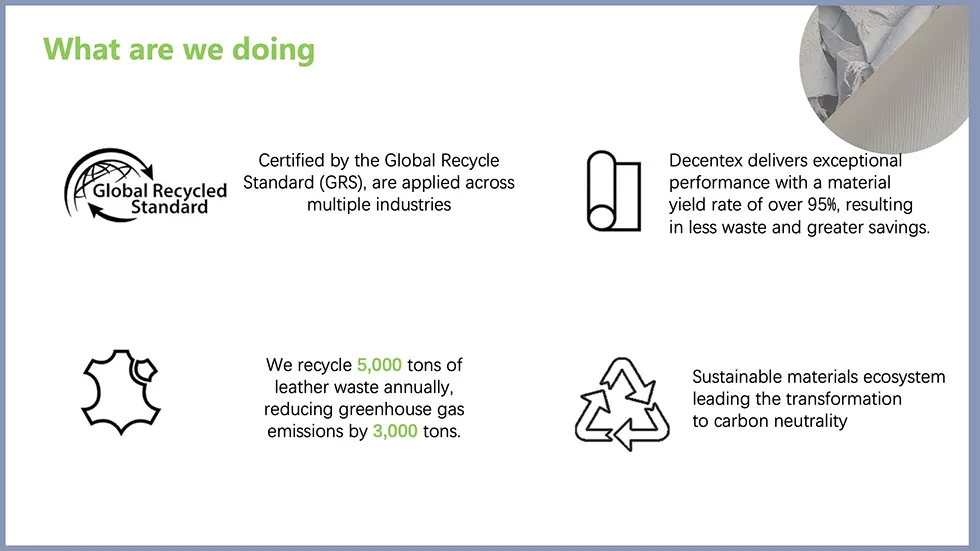 Nosso compromisso com a sustentabilidade: desviar milhares de toneladas de couro de aterros sanitários e reduzir as emissões de carbono em milhares de toneladas. Não estamos apenas ajustando o desperdício em algo valioso, mas também fazê -lo com um processo que economiza vastas quantidades de energia e água, além de reduzir as emissões de CO2.