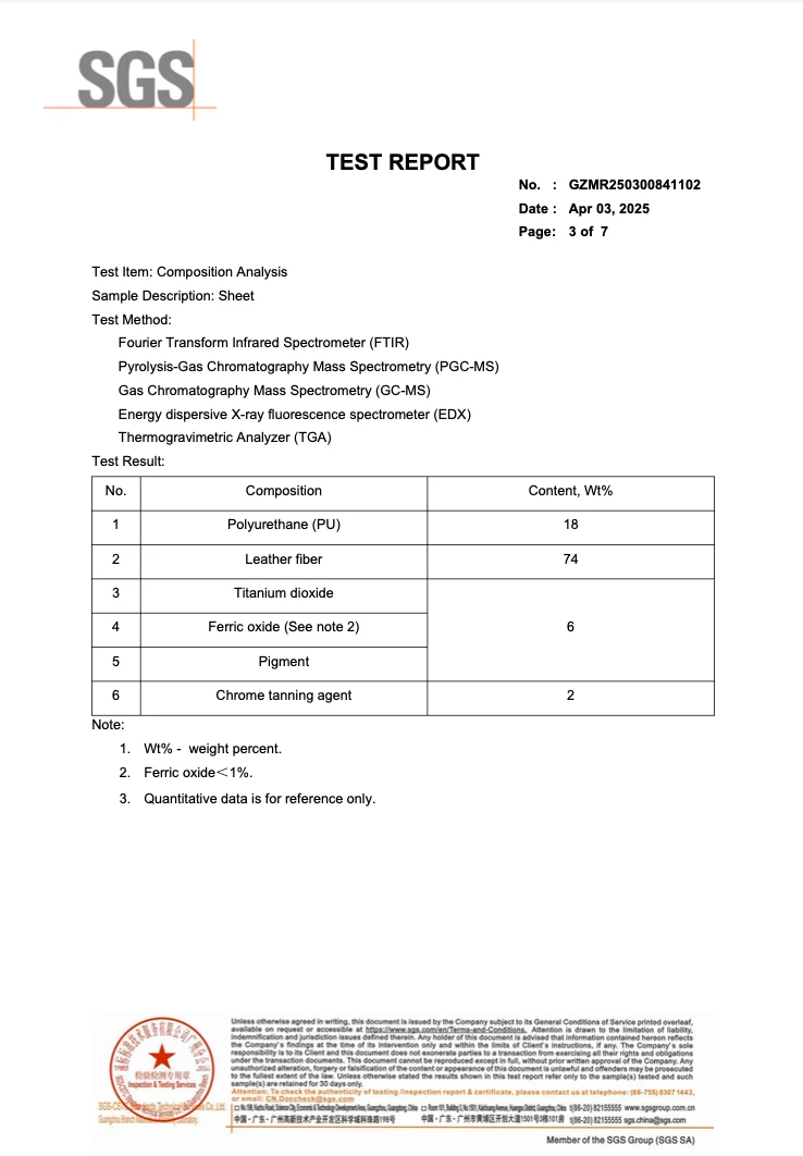 70%+ Conteúdo de couro Garantido: Garantimos que nossos produtos contenham 70% de conteúdo de couro genuíno, por teste SGS, adquirido exclusivamente de cutts de couro descartados. Através da tecnologia avançada de reprocessamento, transformamos esse desperdício em materiais premium, alcançando um modelo de produção totalmente circular.